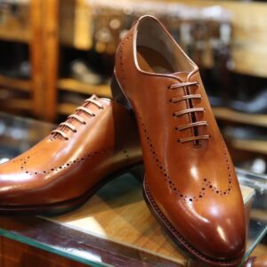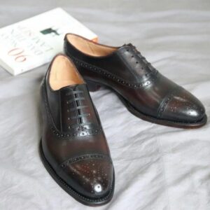 Giày patina da bò ý nhập da 1 mảnh 2 màu đen , bò