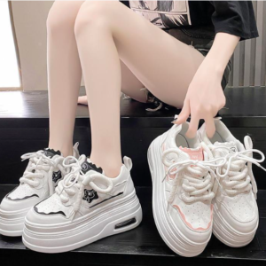 gìay da cao cấp mềm và nhẹ êm chân độn cao màu trắng