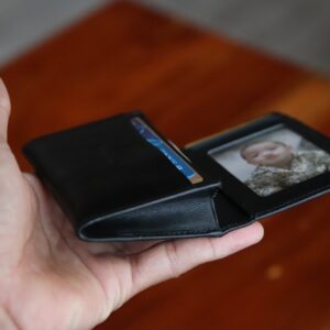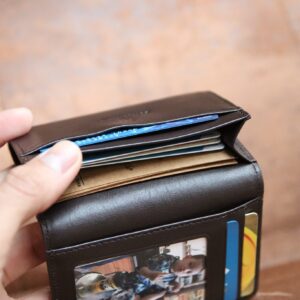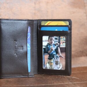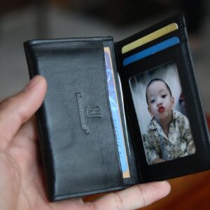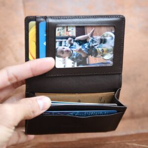 Ví card mini nhỏ gọn Có 2 mau đen va nâu Kích thước 7 x 10.5cm Để vừa CMT. thẻ card. Tiền gập đôi