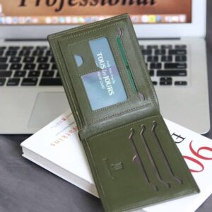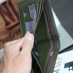 ví nam da bò màu xanh lá, công nghệ thuộc da tiên tiến, tạo cảm giác mềm mại khi sử dụng. thiết kế thời trang phong cách năng động cá tính. 1 ngăn kính, 5 ngăn thẻ tín dụng, 1 ngăn phụ đựng giấy tờ rộng rãi. 2 ngăn đựng tiền, khoá kéo palladium.