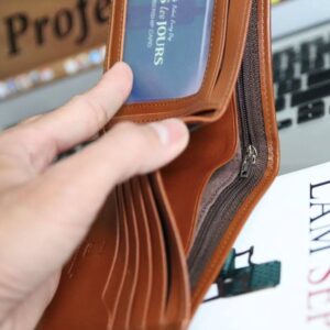 ví ngang da bò màu vàng bò sáng, được làm bởi thợ tay nghề cao của Ninja professional công nghệ thuộc da tiên tiến,tạo cảm giác êm dịu khi sử dụng thiết ké thon gọn thời trang,1 ngăn kiếng, 5 ngăn thẻ tín dụng, 4 ngăn phụ để giấy cavet xe và căn cước công dân. 2 ngăn lớn để tiền .có khoá kéo palladium.